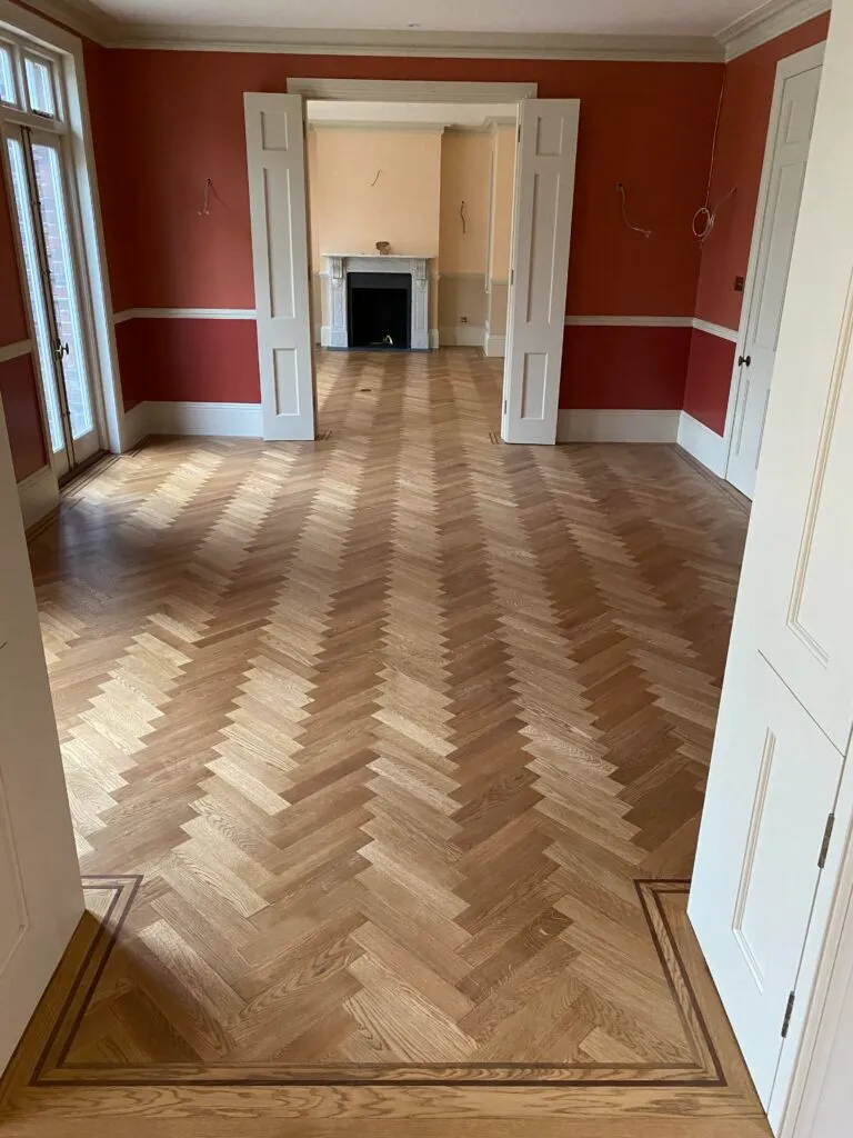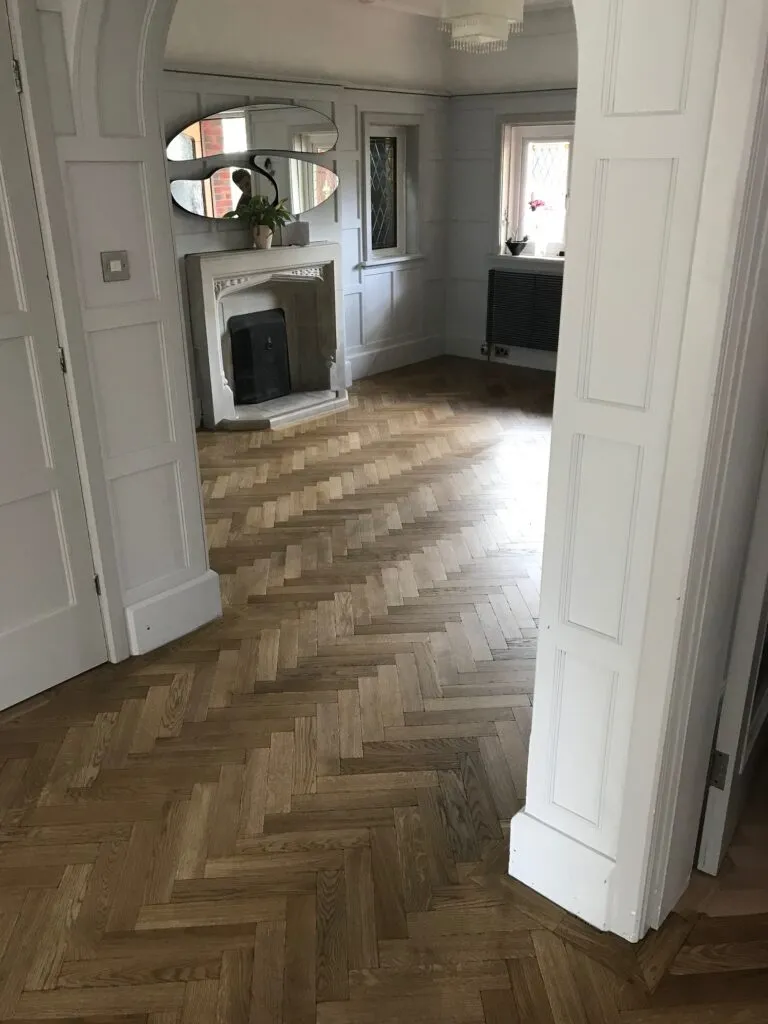 Parquet flooring brings timeless elegance with distinctive herringbone and chevron patterns. Each block is crafted to create a bespoke look that works beautifully in both traditional and modern spaces.
