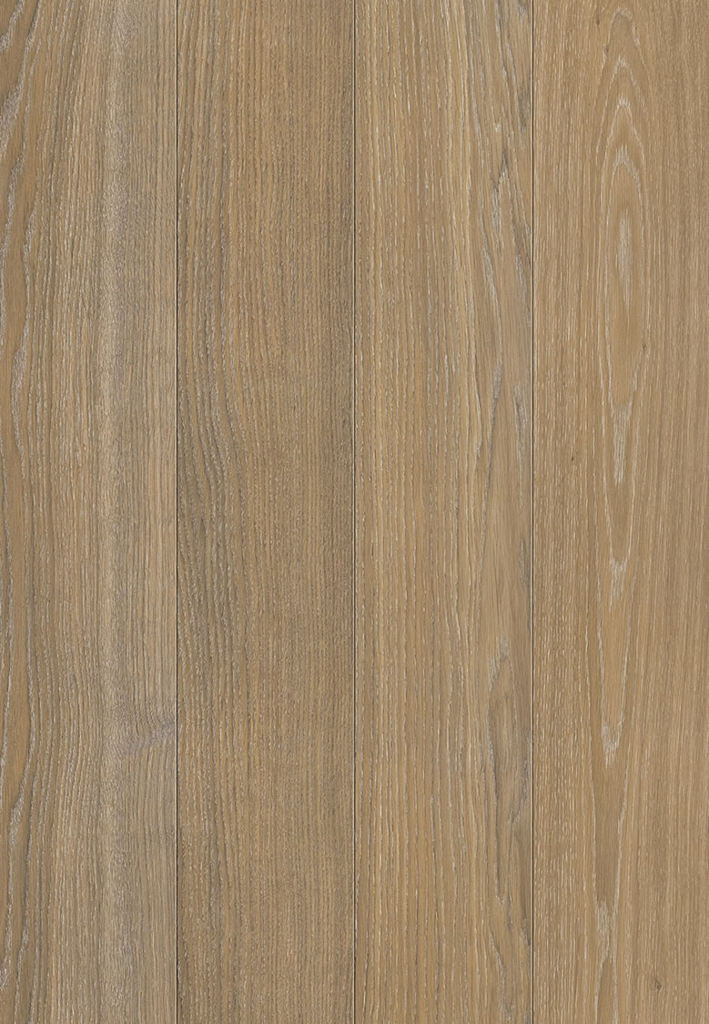 Light smoked oak is beautifully finished with a white satin coat, offering a soft, bright, and airy look.